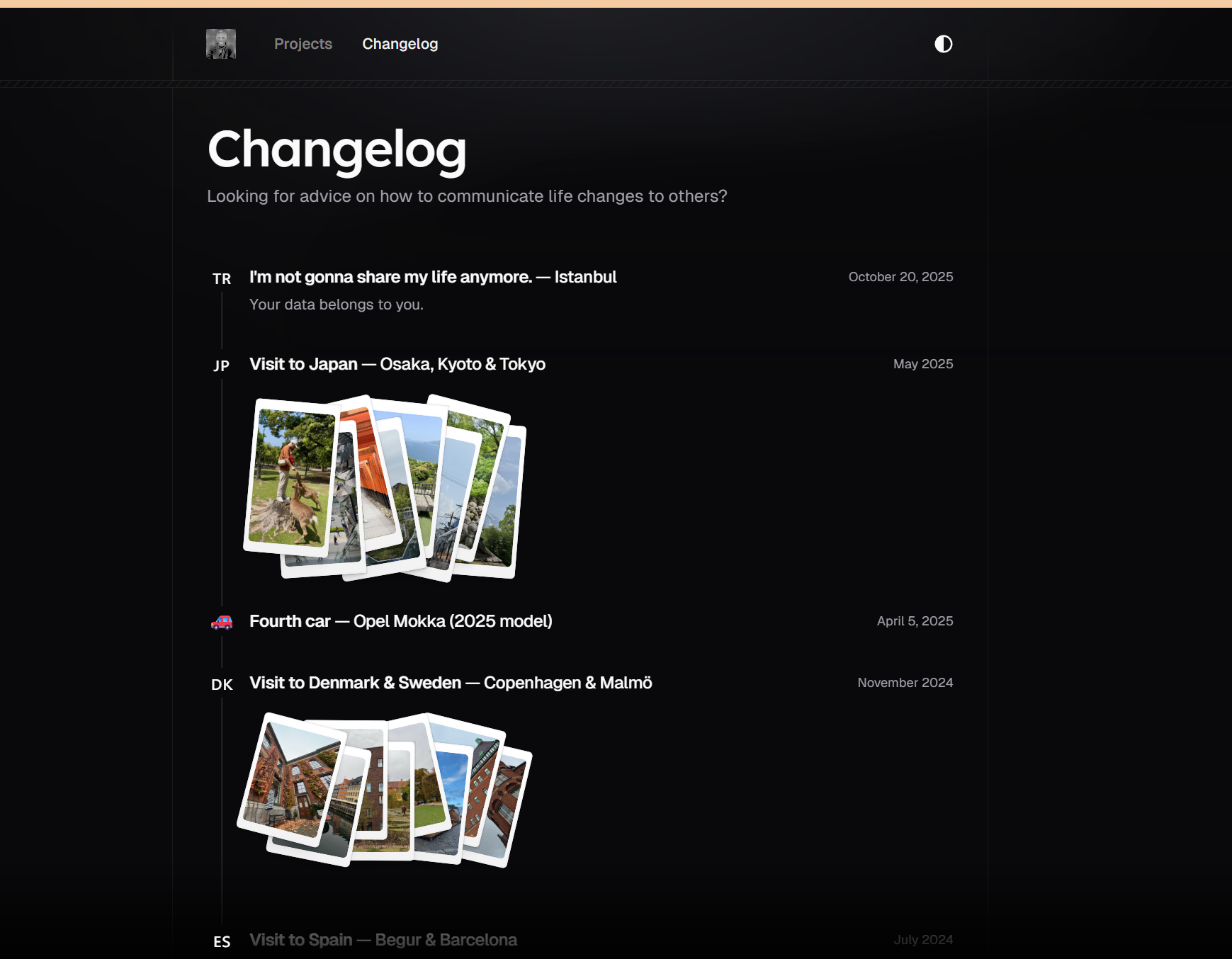 朋友问我为什么不选择苹果手机自带的相册,每张照片都能增加描述功能呀,就算是每个月充 6 块钱放在 iCloud 也行啊。那么这个项目的优点就是将照片串起来的功能,而且可以给这组照片增加描述。另外在视觉展现上,这个项目比手机自带的相册更加方便直观,因为手机相册的照片,需要点击一下照片才能展开描述,未免有点繁琐。