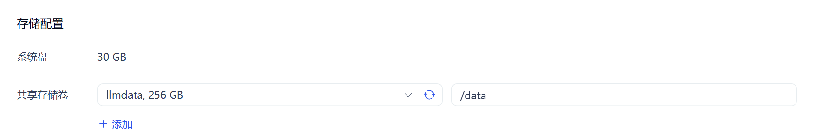 添加共享存储卷后,为其定义挂载路径,这样之后代码和数据集可以放到开发机的这个路径下。