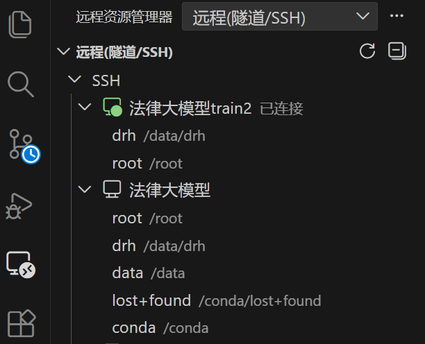 安装完毕后重启 VSCode,点击左侧的远程资源管理器打开 ssh 服务器选择栏: