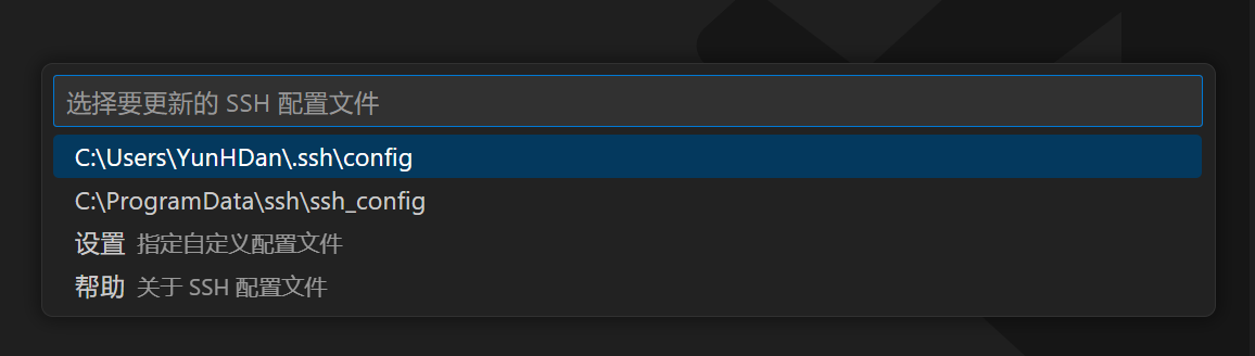 选择要更新的 ssh 配置文件,没有就自己创建一个: